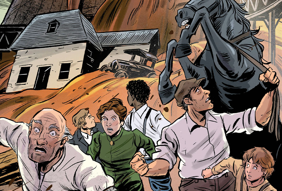 Watch a video read-aloud of the mini graphic novel Swept Away by Syrup!